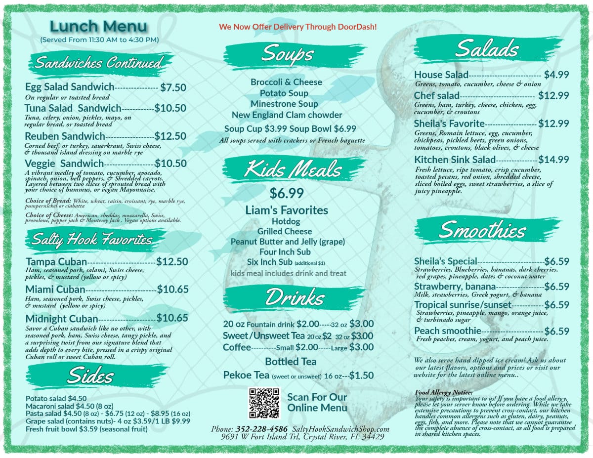 At Salty Hook Sandwich Shop, we take pride in offering a diverse and mouth-watering lunch menu that caters to all tastes. Whether you crave a hearty sandwich, flavor-packed subs, or refreshing salads, we have something for everyone!
